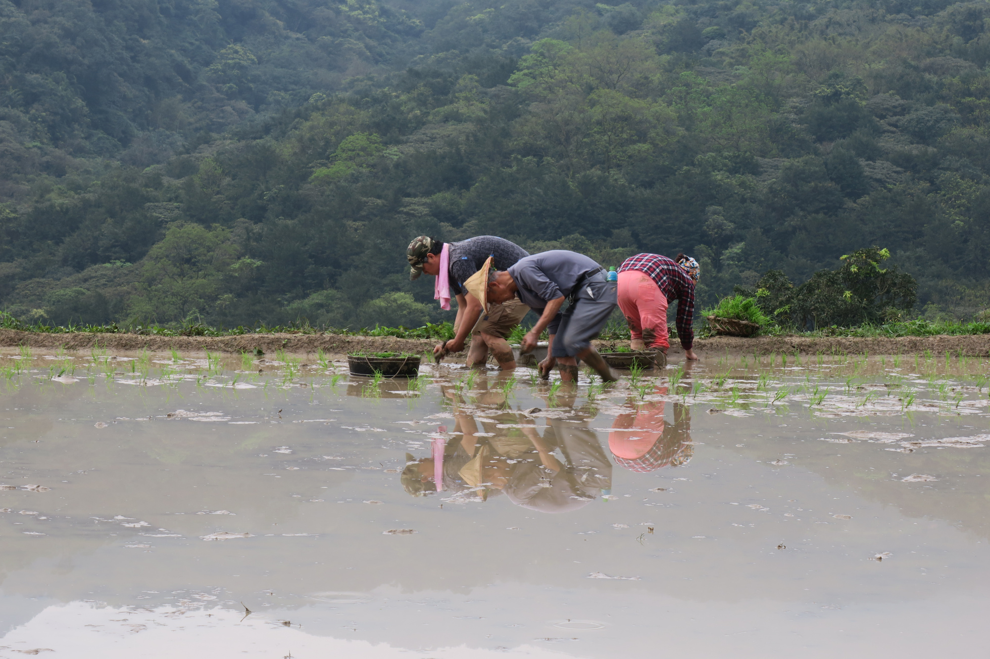 在機械化普及的今天,貢寮水梯田因地形崎嶇、田塊細碎,依然保留了最珍貴的手插秧傳統。對當地務農的長者來說,插秧不只是勞動,更是一場「腳力」與「眼力」的藝術。 那一株株秧苗在泥濘中排出的整齊行伍,不僅養活了世代居民,更守護了田間穿梭的食蟹獴、黃腹細蟌與食蟲植物,也是對水梯田生態系的承諾。